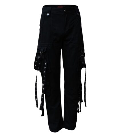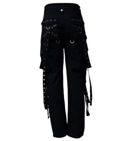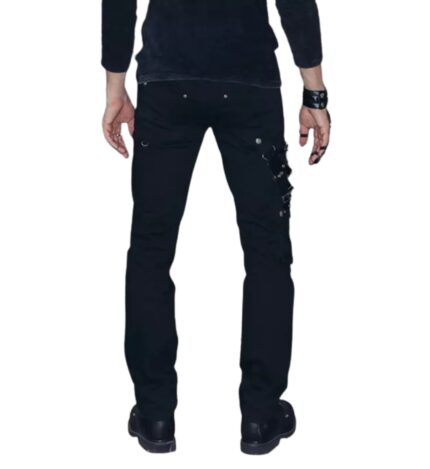 Equipped with adjustable straps, hooks, and metal accents, these pants deliver classic punk-bondage style with a practical touch. Every detail enhances the design while keeping the overall look clean and purposeful.