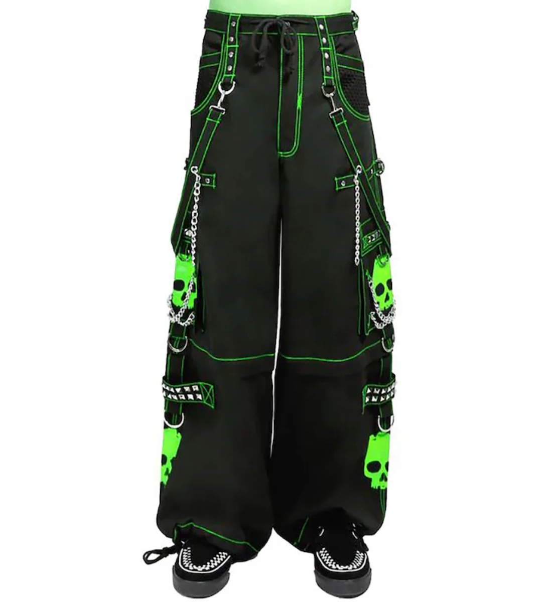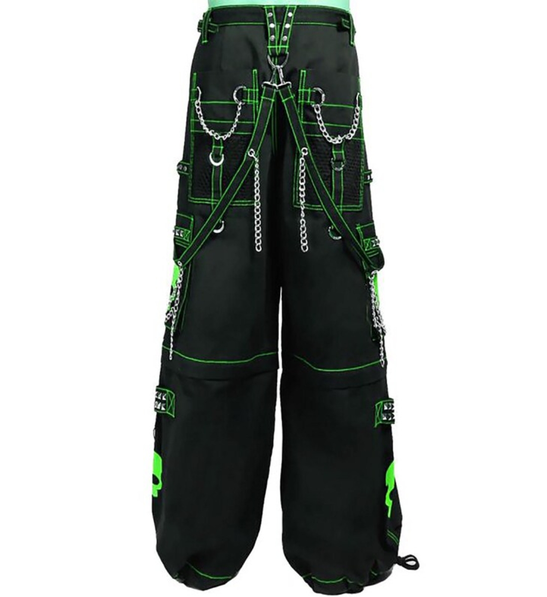 Unleash your style with the Skull Rebellion Gothic Cargo Pants. Featuring bold green super skull prints and punk chains, these unisex cargo pants are perfect for punk rock fashion, streetwear, and gothic style. Crafted from high-quality cotton polyester blend, they offer durability and comfort for any occasion, from music festivals to casual outings.