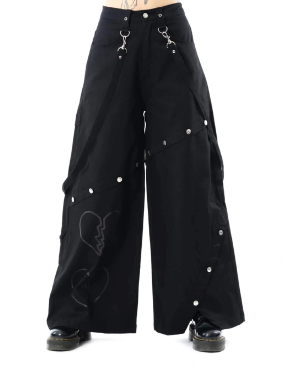 X GOTHIC Womenβs Black Gothic Wide-Leg Pants β Broken Heart Style