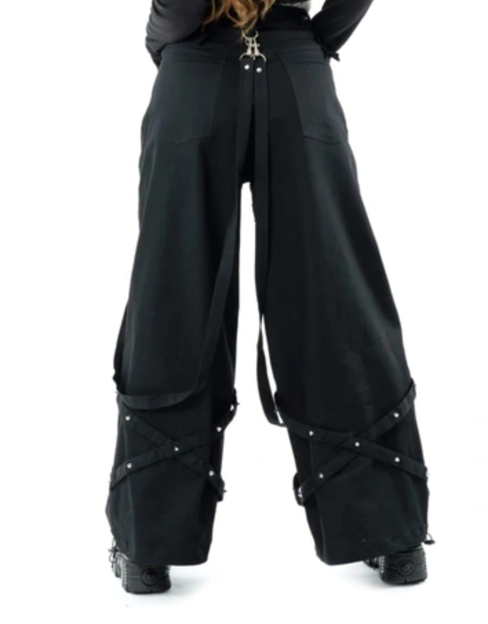 X GOTHIC Women’s Black Gothic Strap Pants – Wide-Leg Streetwear