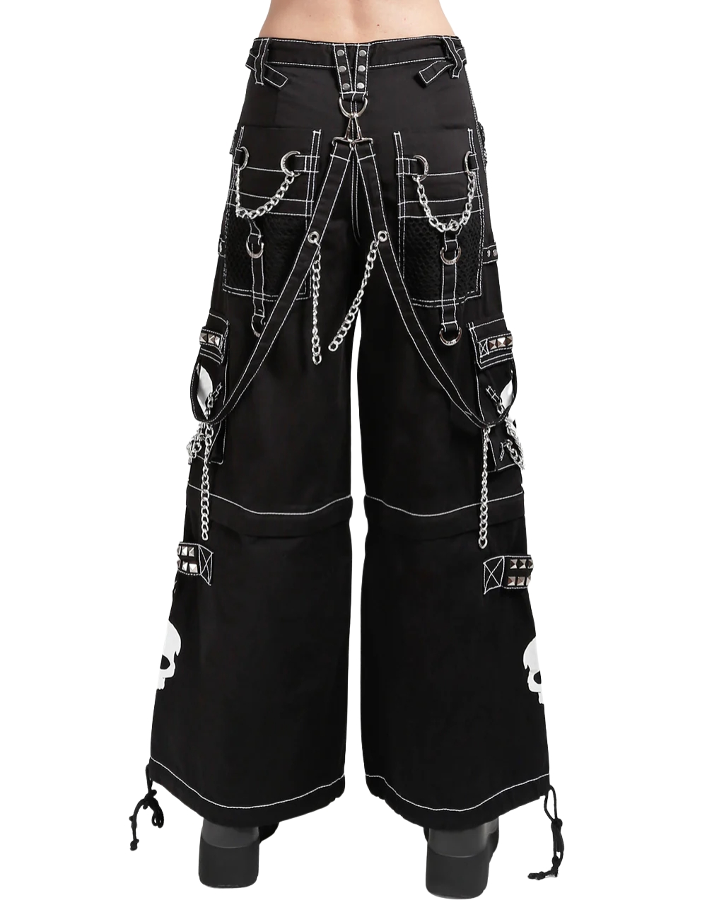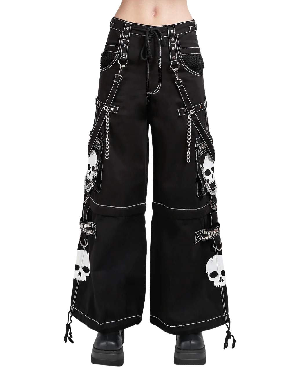 Design: Skull prints on both legs symbolizing rebellion and gothic identity